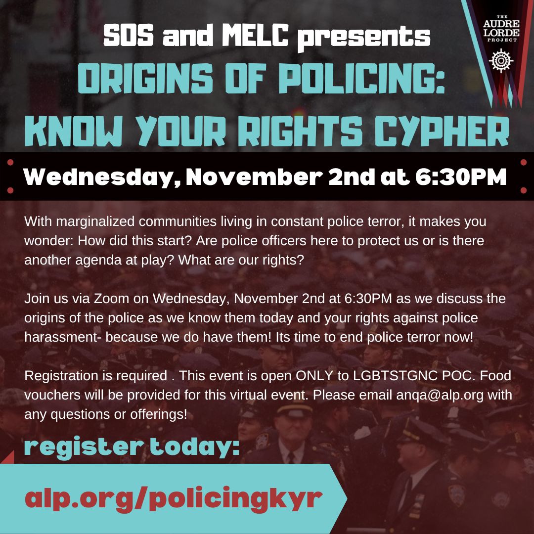 Registration is required at www.alp.org/policingKYR. This event is open ONLY to LGBTSTGNC POC. Food vouchers will be provided for this virtual event. Please email anqa@alp.org with any questions or offerings!