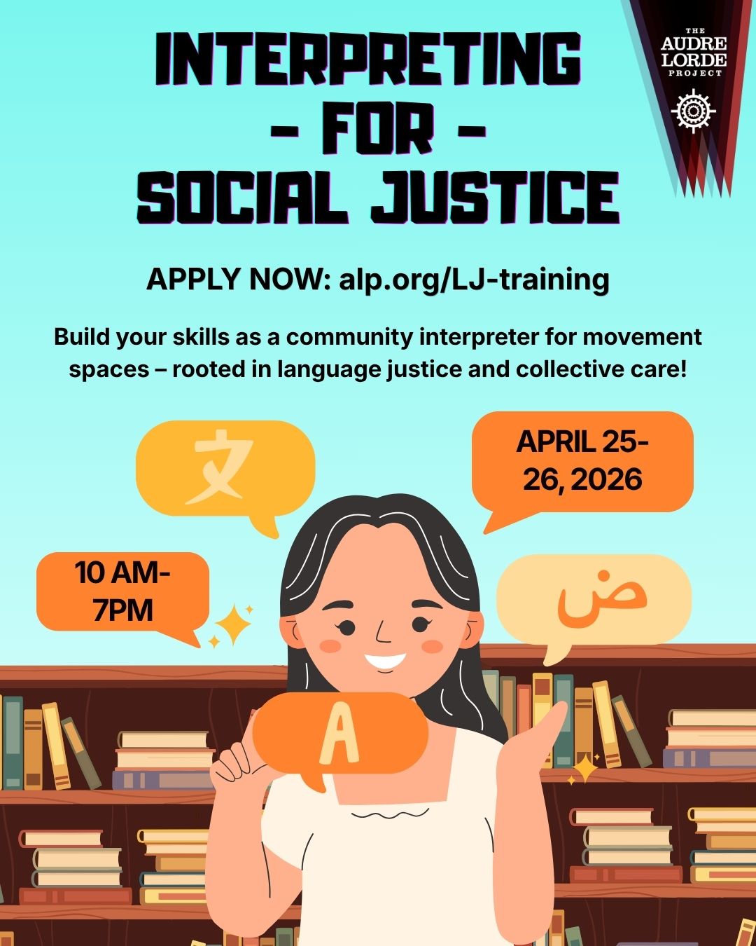 This two-day training introduces participants to the practice of community interpretation for social justice and language justice in movement spaces. Participants will explore how language access impacts participation, leadership, and power in our communities, and develop foundational skills to support multilingual organizing.