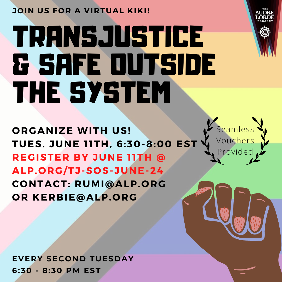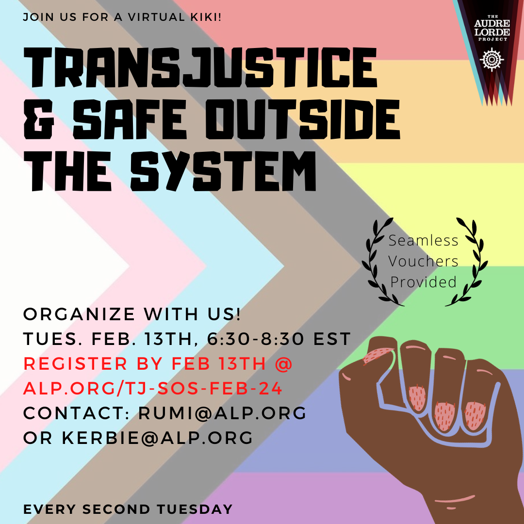 TransJustice and Safe OUTside the System Collective combine to co-werk! Together we will share ALP-wide updates, offer information about our grassroots community campaigns, and get to know the interests and skills of our community members.